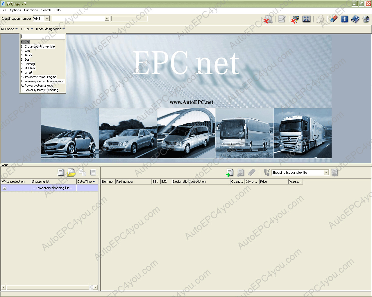 Mercedes-Benz EPC EWA net, electronic spare parts catalogue consist original spare parts catalogue, all models cars, trucks, buses Mercedes-Benz, all markets, Smart & Maybach also including.