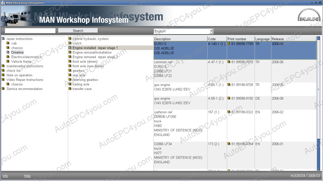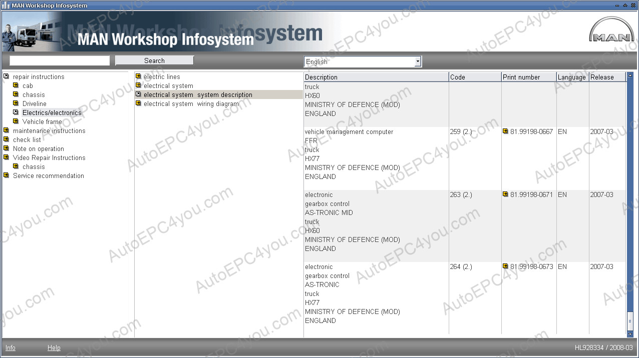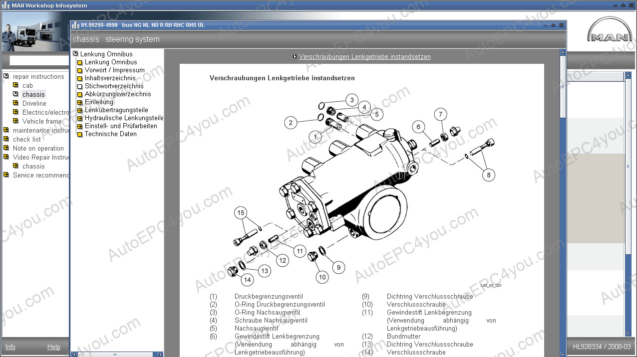 يحتوى البرنامج على كافة البيانات والداتا اللازمة لإصلاح وصيانة المحرك والعفشة والشاسية ونظام النقل و المخططات الكهربية للشاحنة او الباص