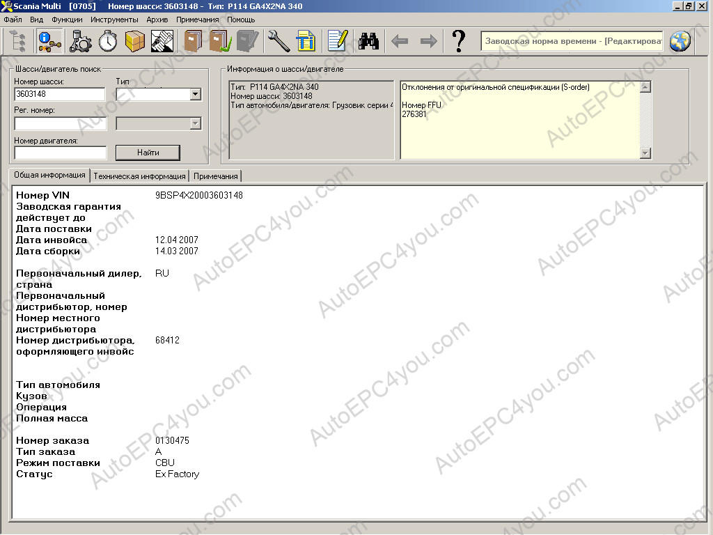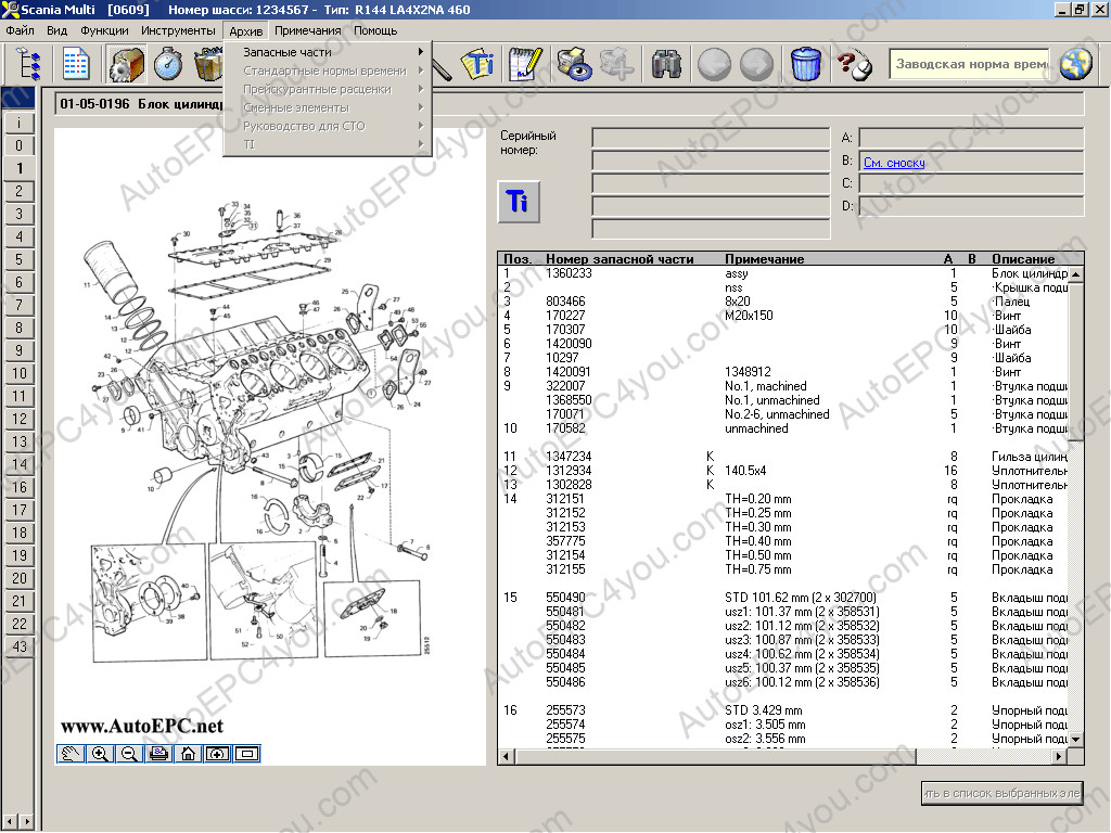 contains the information on spare parts, accessories, and also rules of change and updating, calculation of loading on a frame, etc. The information in the program Scania is presented since 1985, for lorries, the chassis and buses Scania 3 and 4-th series, for all regions (differ with the equipment and execution. Repair manuals present only in Russian language.